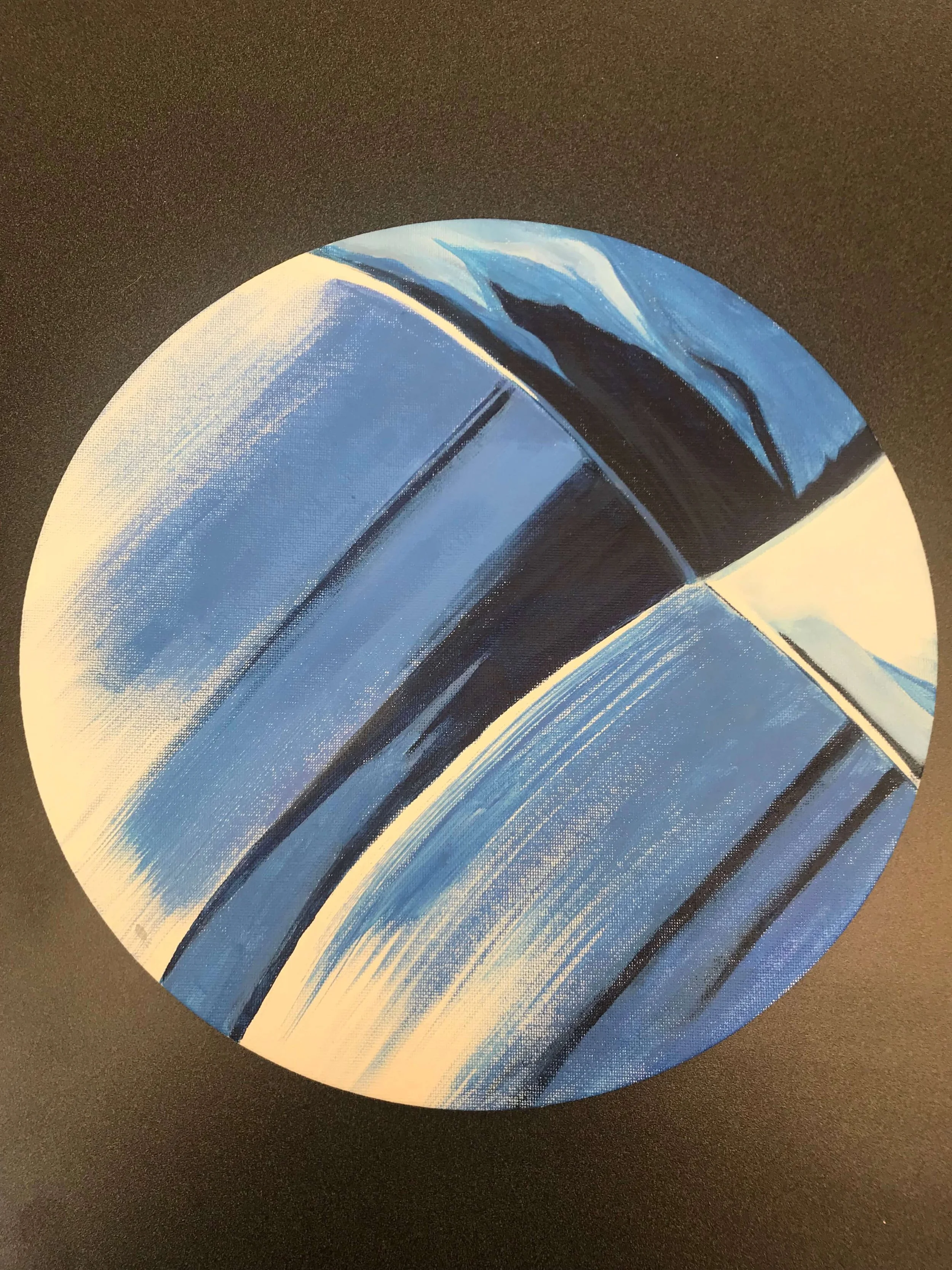 eye of the storm, abstract acrylic, 12’’ round, 2019