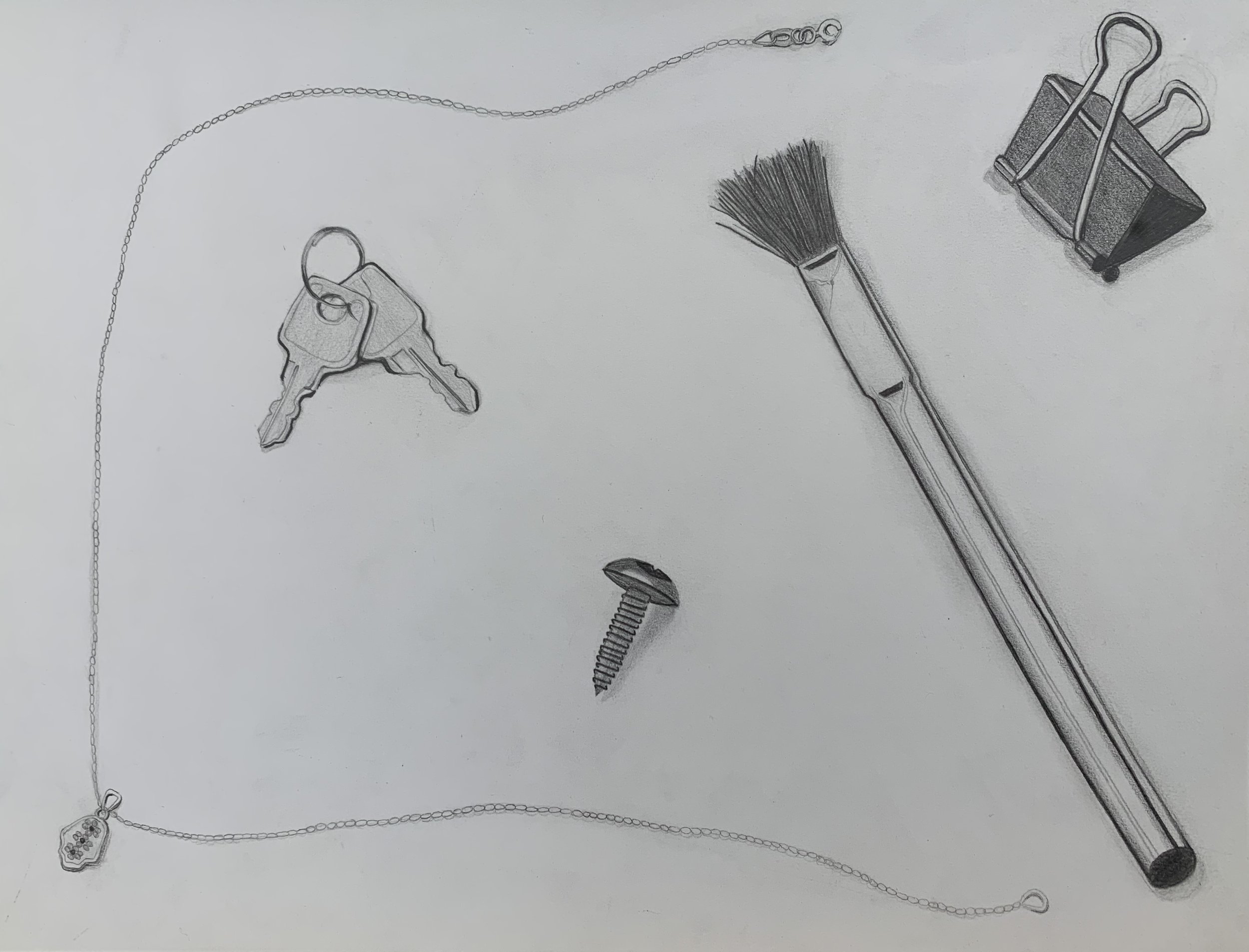 empty your pockets, graphite still life, 9’’ x 12’’, 2019