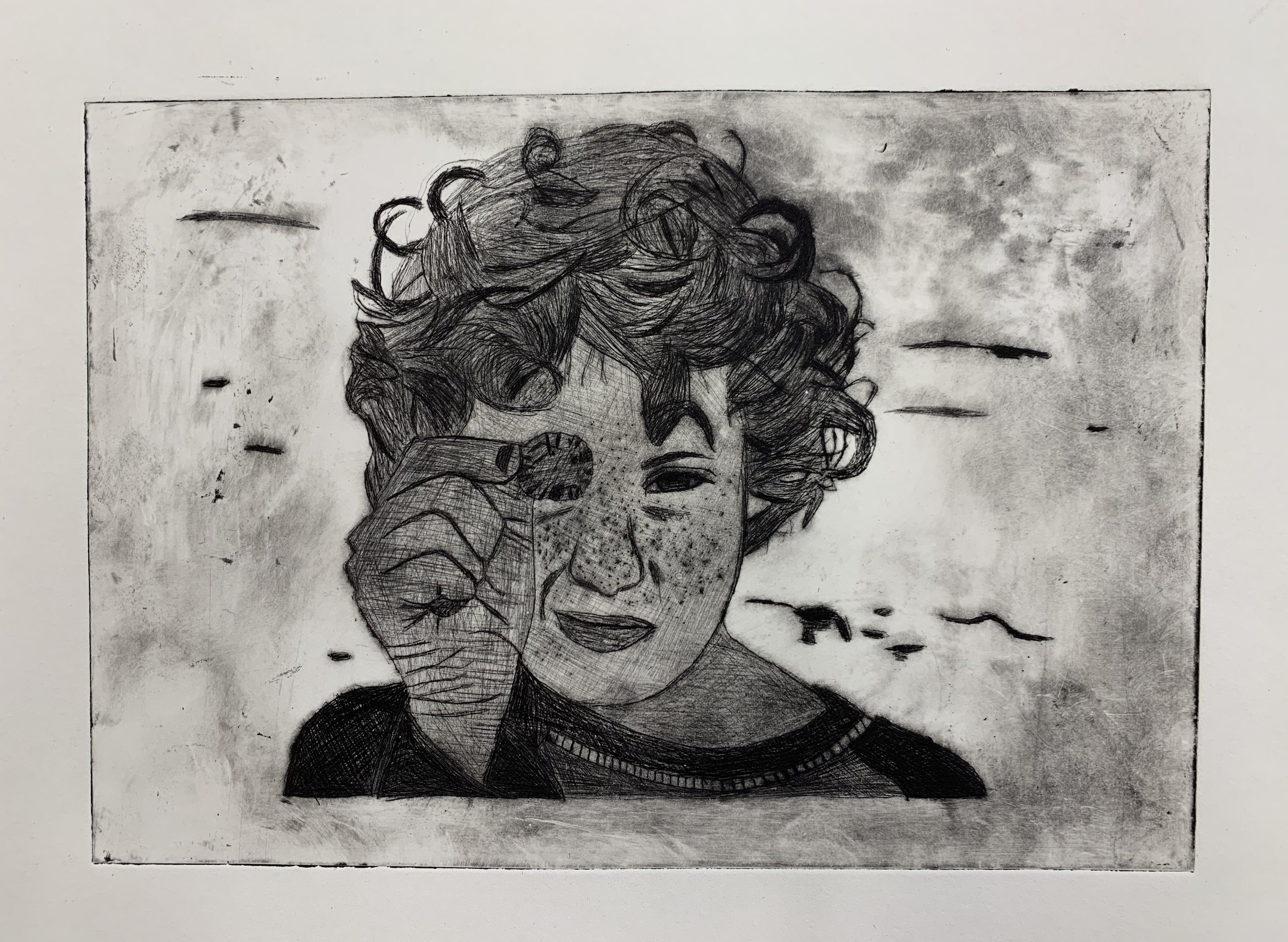 beach day, drypoint print, 6’’ x 7.5’’, 2019